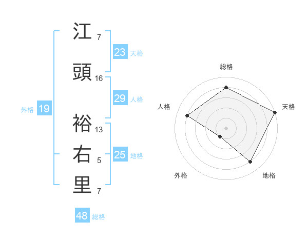 江頭 裕右里さんを姓名の画数から五運を鑑定