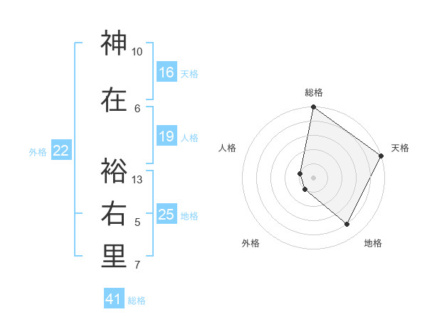 神在 裕右里さんを姓名の画数から五運を鑑定
