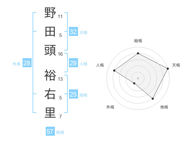 野田頭 裕右里さんを姓名の画数から五運を鑑定