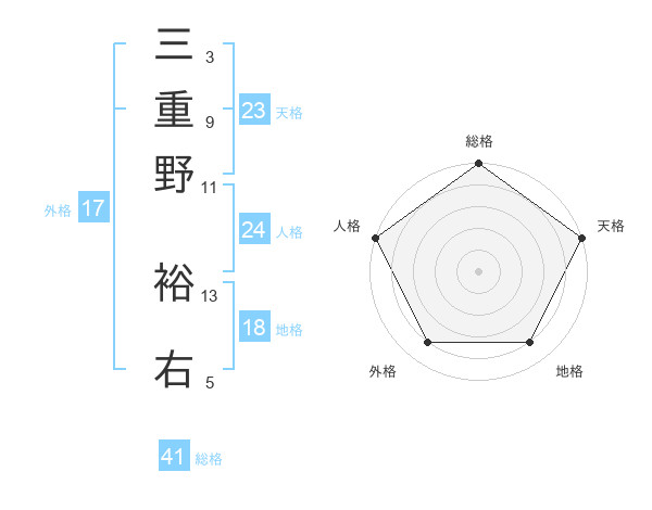 三重野 裕右さんを姓名の画数から五運を鑑定