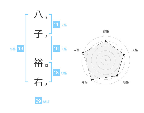 八子 裕右さんの総格は29画の4点!