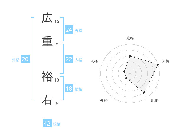 広重 裕右さんの総格は42画の3点!