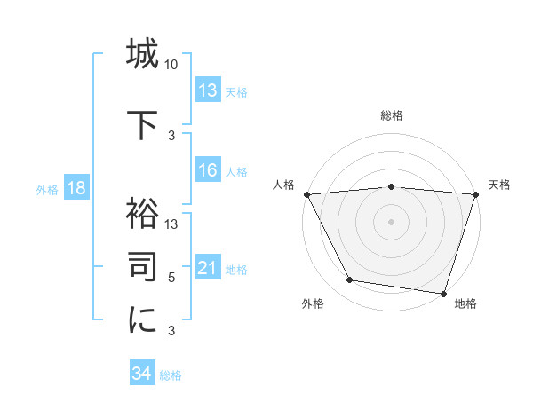 城下 裕司にさんを姓名の画数から五運を鑑定