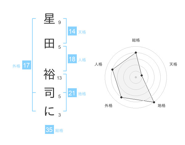 星田 裕司にさんを姓名の画数から五運を鑑定