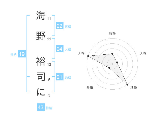 海野 裕司にさんを姓名の画数から五運を鑑定