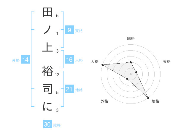 田ノ上 裕司にさんを姓名の画数から五運を鑑定