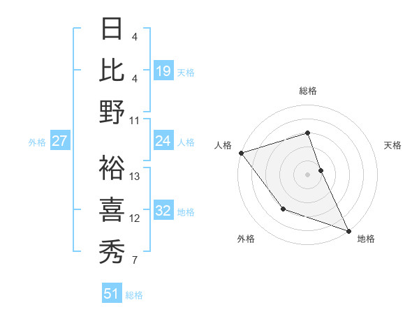 日比野 裕喜秀さんの総格は51画の3点!