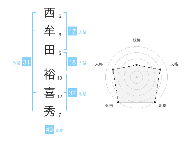 西牟田 裕喜秀さんを姓名の画数から五運を鑑定
