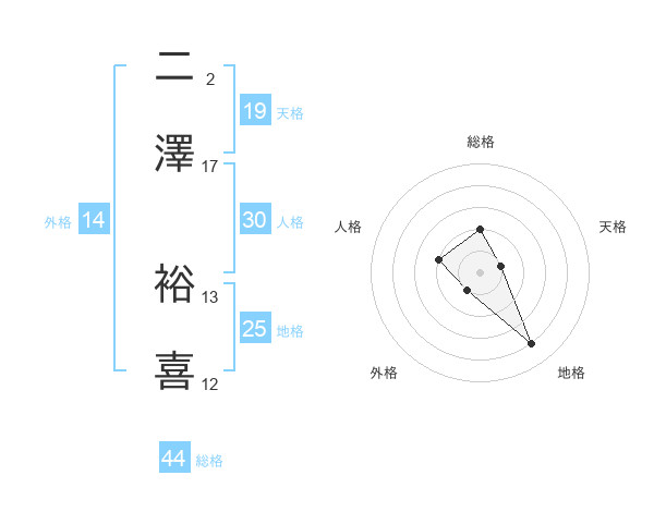 二澤 裕喜さんを姓名の画数から五運を鑑定