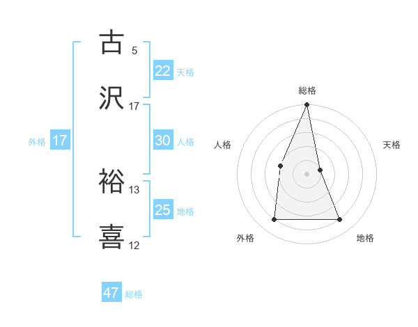 古沢 裕喜さんを姓名の画数から五運を鑑定