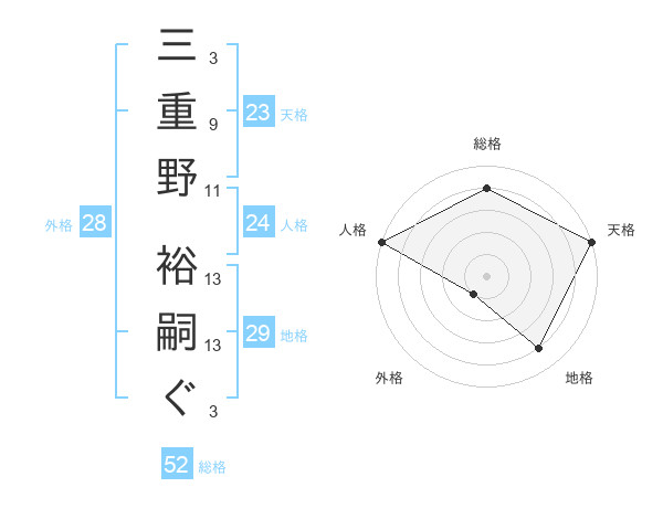 三重野 裕嗣ぐさんの総格は52画の4点!