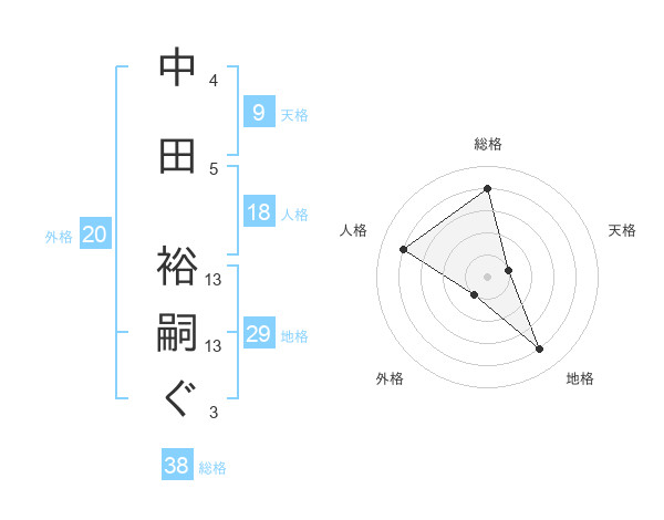中田 裕嗣ぐさんを姓名の画数から五運を鑑定