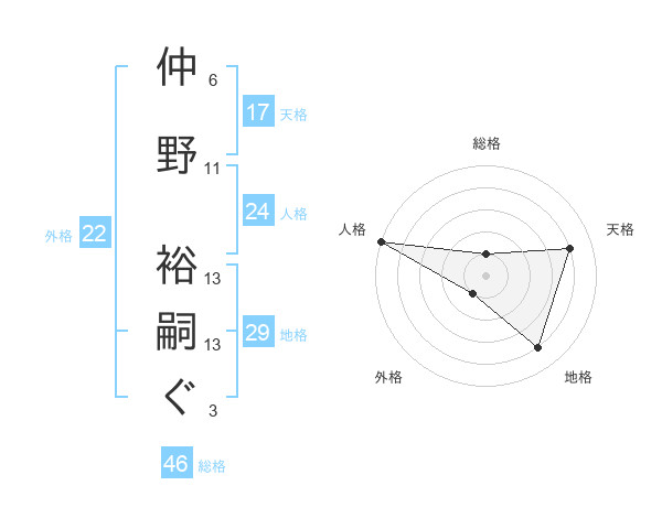 仲野 裕嗣ぐさんを姓名の画数から五運を鑑定