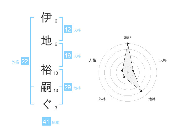伊地 裕嗣ぐさんの総格は41画の5点!
