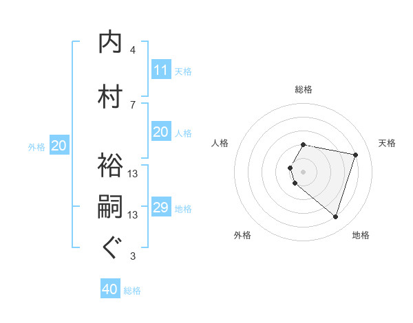 内村 裕嗣ぐさんを姓名の画数から五運を鑑定