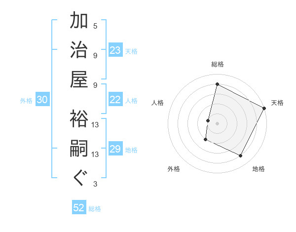 加治屋 裕嗣ぐさんの天格は23画の5点!