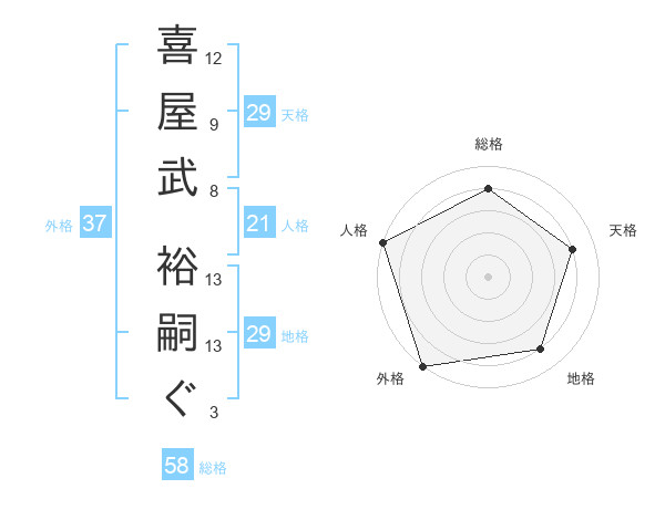 喜屋武 裕嗣ぐさんの人格は21画の5点!