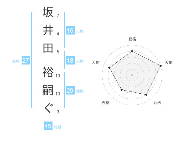 坂井田 裕嗣ぐさんの総格は45画の4点!