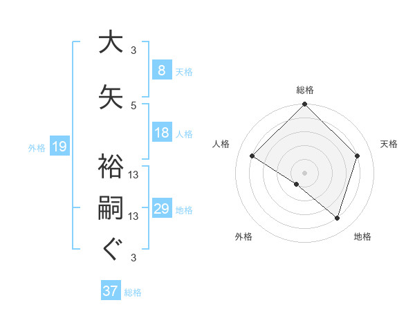 大矢 裕嗣ぐさんの総格は37画の5点!