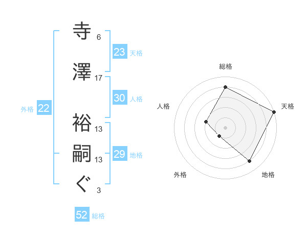 寺澤 裕嗣ぐさんの天格は23画の5点!