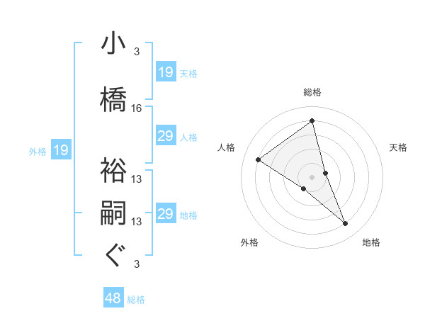 小橋 裕嗣ぐさんの地格は29画の4点!