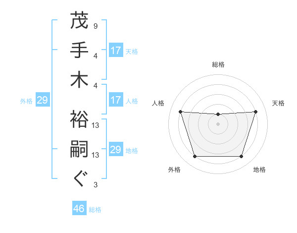 茂手木 裕嗣ぐさんの天格は17画の4点!