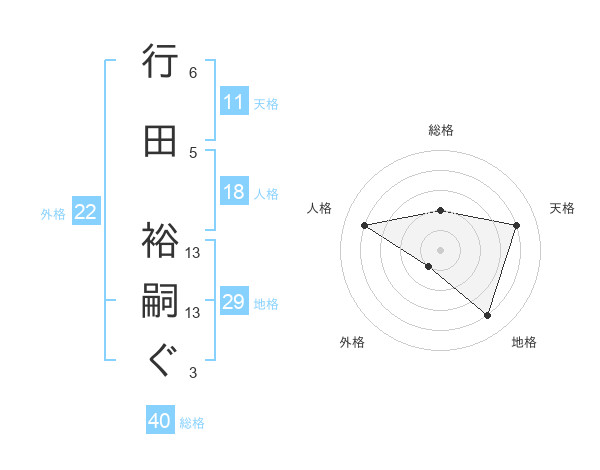 行田 裕嗣ぐさんを姓名の画数から五運を鑑定