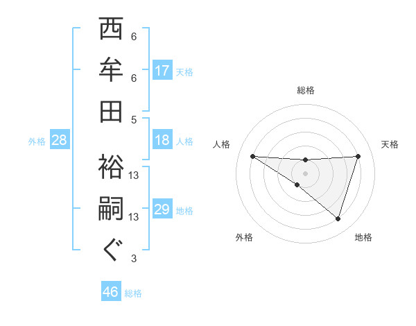 西牟田 裕嗣ぐさんの天格は17画の4点!