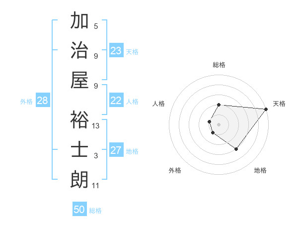加治屋 裕士朗さんを姓名の画数から五運を鑑定