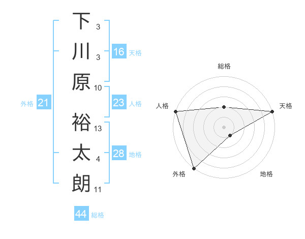 下川原 裕太朗さんを姓名の画数から五運を鑑定
