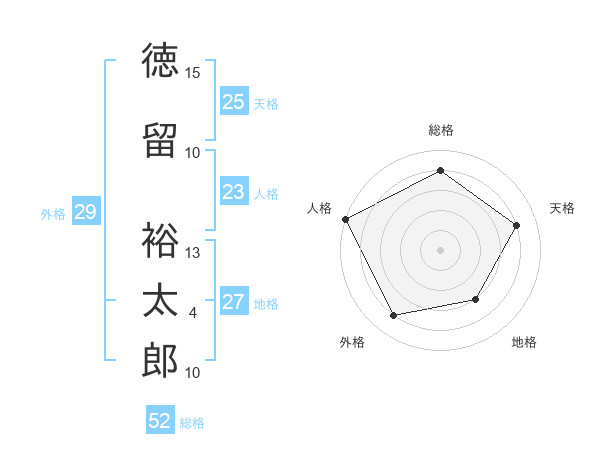 徳留 裕太郎さんの天格は25画の4点!