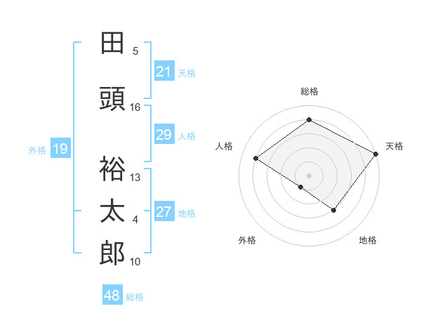 田頭 裕太郎さんの天格は21画の5点!