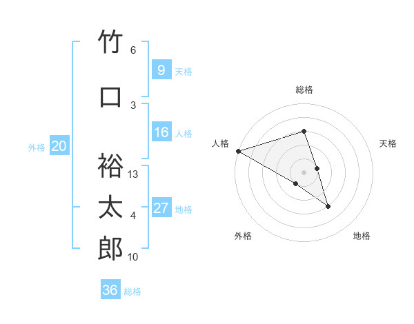 竹口 裕太郎さんの地格は27画の3点!
