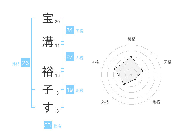 宝溝 裕子すさんの総格は53画の3点!