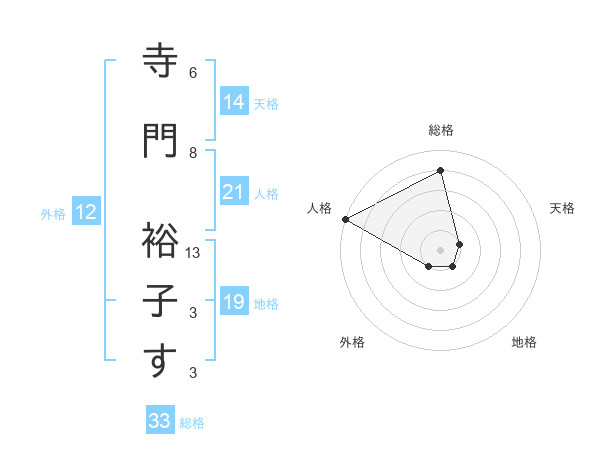 寺門 裕子すさんを姓名の画数から五運を鑑定