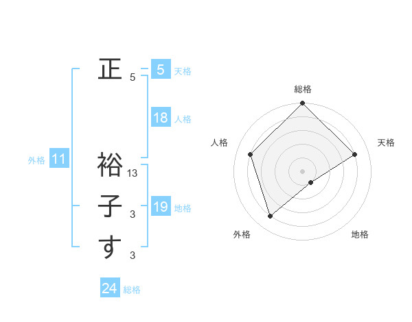 正 裕子すさんの天格は5画の4点!
