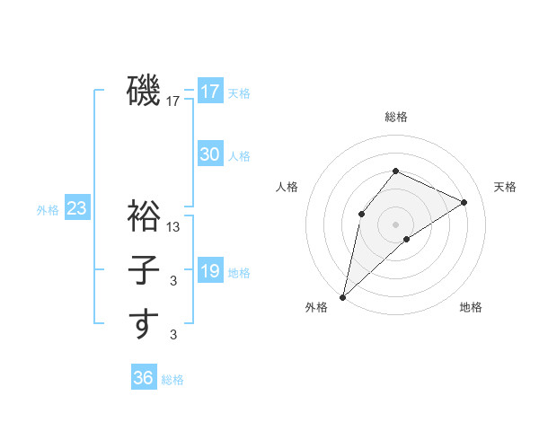 磯 裕子すさんの天格は17画の4点!