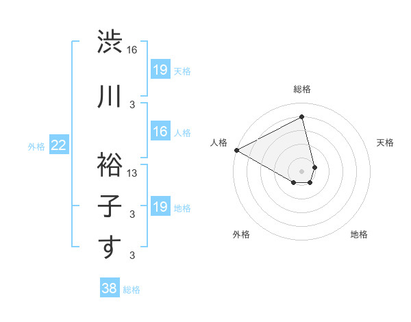 渋川 裕子すさんの総格は38画の4点!