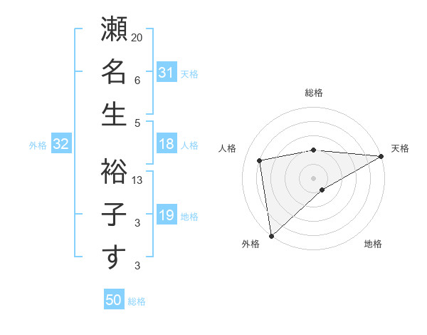 瀬名生 裕子すさんの総格は50画の2点!