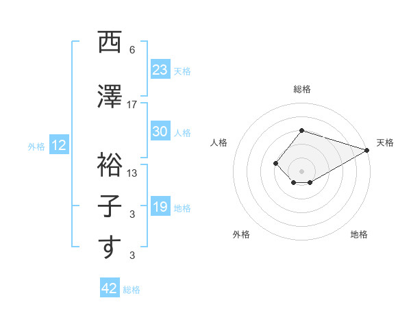 西澤 裕子すさんを姓名の画数から五運を鑑定