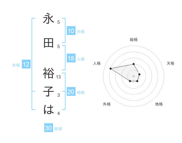 永田 裕子はさんの総格は30画の2点