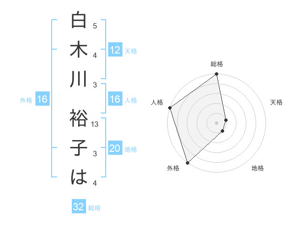 白木川 裕子はさんを姓名の画数から五運を鑑定