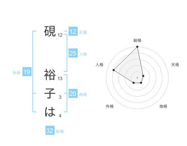 硯 裕子はさんの総格は32画の5点!