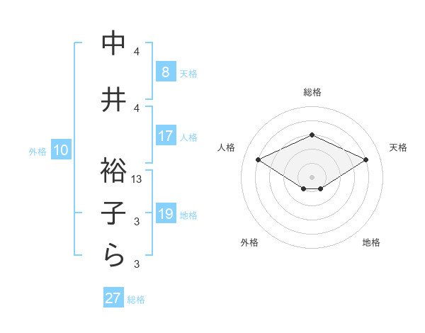 中井 裕子らさんの天格は8画の4点!