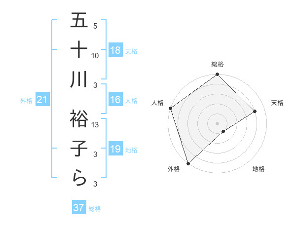 五十川 裕子らさんを姓名の画数から五運を鑑定