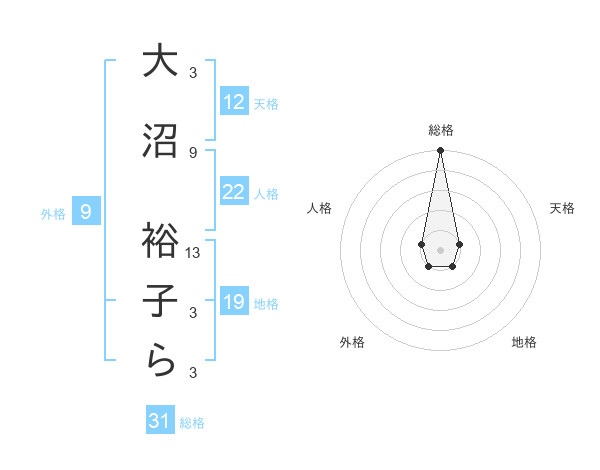 大沼 裕子らさんを姓名の画数から五運を鑑定