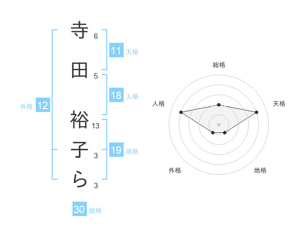 寺田 裕子らさんを姓名の画数から五運を鑑定