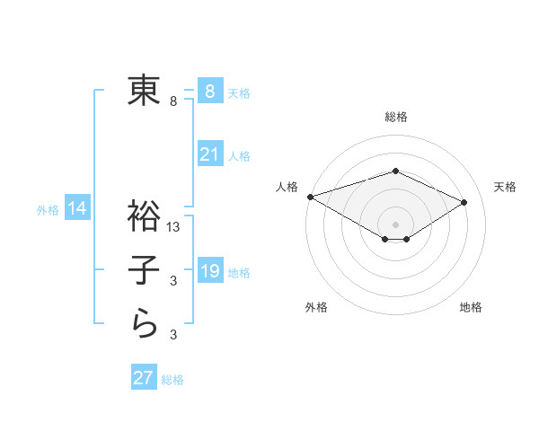 東 裕子らさんの総格は27画の3点!