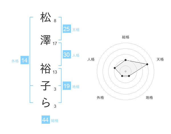 松澤 裕子らさんの総格は44画の2点!