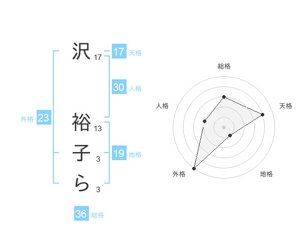 沢 裕子らさんの総格は36画の3点!